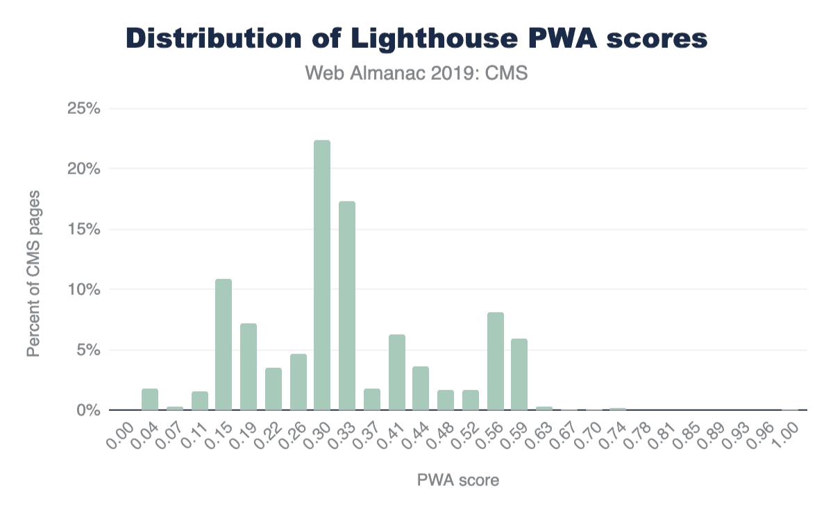 Figure 14.20. Distribution of Lighthouse PWA category scores for CMS pages.