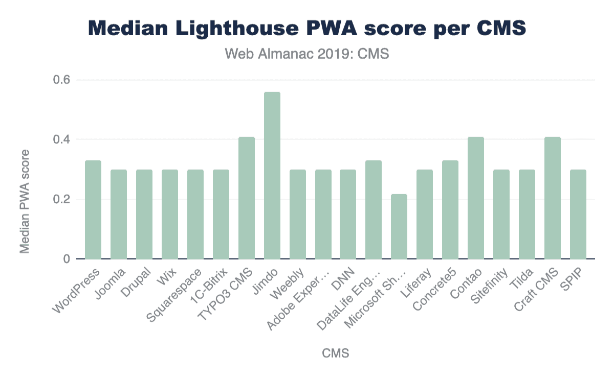 Figure 14.21. Median Lighthouse PWA category scores per CMS.