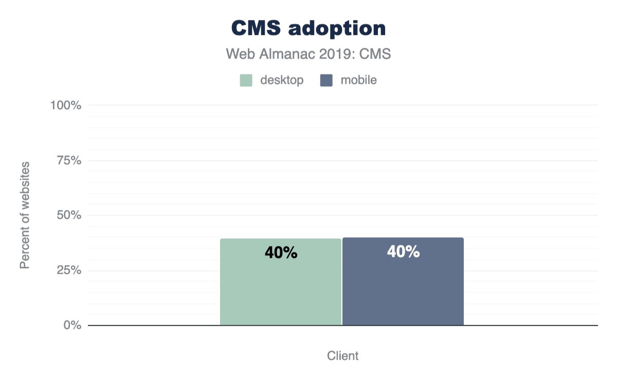 Figure 14.4. Percent of desktop and mobile websites that use a CMS.