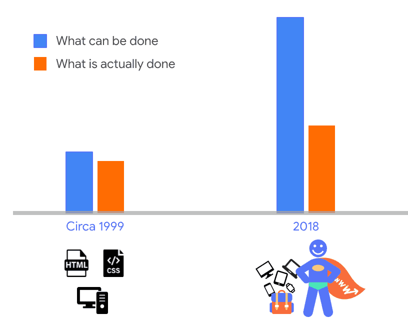 Chart illustrating the increase in web capabilities from 1999 to 2018.