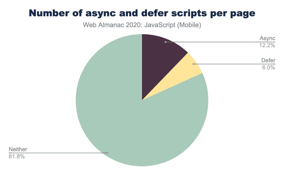 Nowadays, the pattern is unnecessary for the vast majority of sites and any script loaded with the pattern in place will interrupt the HTML parser when it needs to be executed, instead of deferring until the page has loaded. The pattern is still used surprisingly often, with 11.4% of mobile pages serving at least one script with that pattern in place. In other words, at least some of the 6% of scripts that use defer aren’t getting the full benefits of the defer attribute.