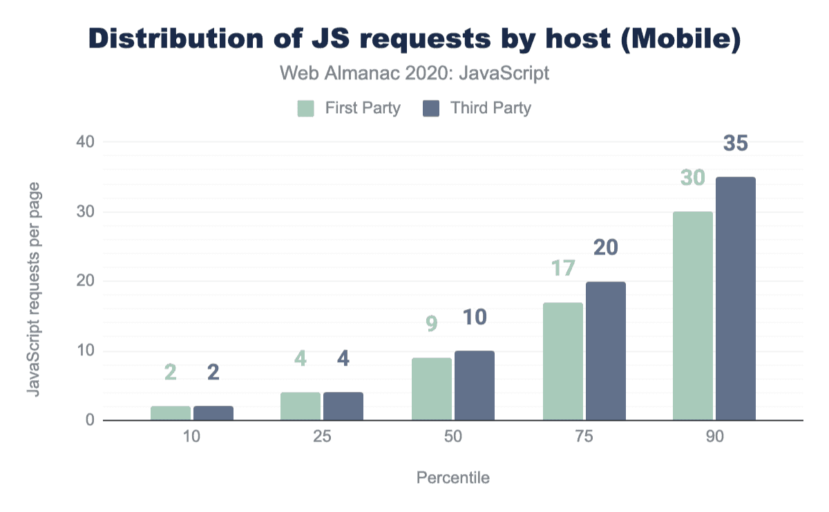 One trend that likely contributes to the increase in JavaScript used on our pages is the seemingly ever-increasing amount of third-party scripts that get added to pages to help with everything from client-side A/B testing and analytics, to serving ads and handling personalization.