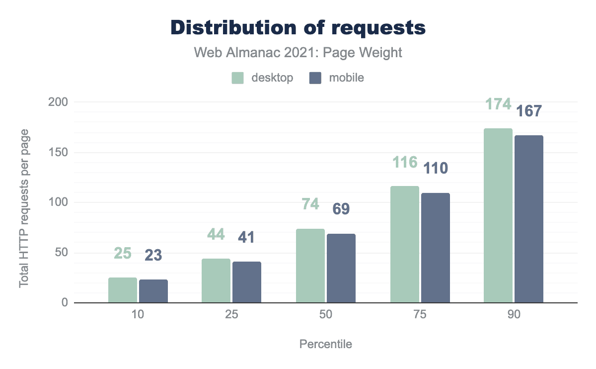 As previously explained in this chapter, as well as the size of resource, the number of requests can have negative impact on page loading performance and so are another measure of page weight.